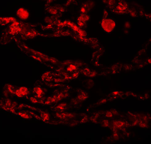 Immunofluorescence of CCDC69 in human lung tissue with CCDC69 antibody at 20 μg/mL. |