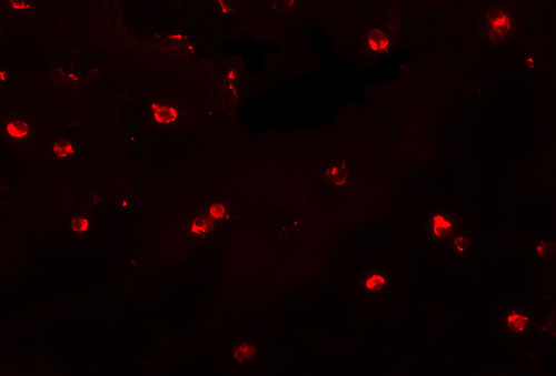 Immunofluorescence of ENC-2 in Jurkat cells with ENC-2 antibody at 20 μg/mL. |