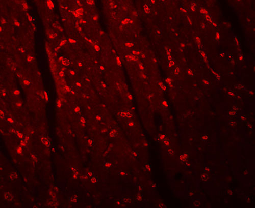 Immunofluorescence of APC10 in mouse heart tissue with APC10 antibody at 20 μg/mL. |