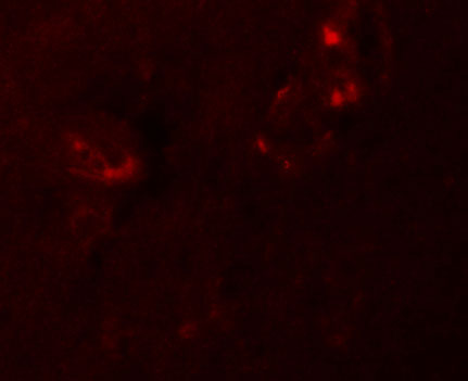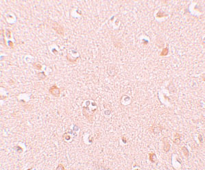 Immunofluorescence of NALP5 in human brain tissue with NALP5 antibody at 20 μg/mL. |