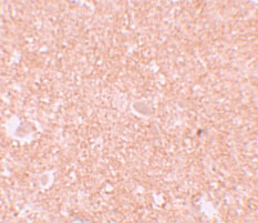 Immunofluorescence of NALP10 in human brain tissue with NALP10 antibody at 20 μg/mL. |
