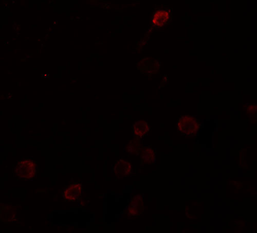Immunofluorescence of SEPT1 in Raji cells with SEPT1 antibody at 20 μg/mL. |