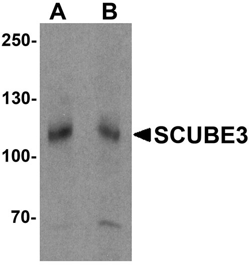 SCUBE3; At least two isoforms of SCUBE3 are known to exist. SCUBE3 antibody is predicted to not cross-react with other SCUBE members