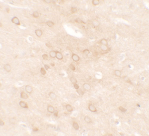 Immunohistochemistry of ESR1 in rat brain tissue with ESR1 antibody at 5 μg/mL.