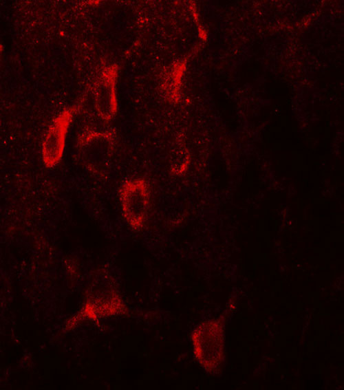 Immunofluorescence of ESR1 in rat brain tissue with ESR1 antibody at 20 μg/mL. |
