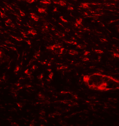 Immunofluorescence of SPP1 in human bladder tissue with SPP1 antibody at 20 μg/mL. |