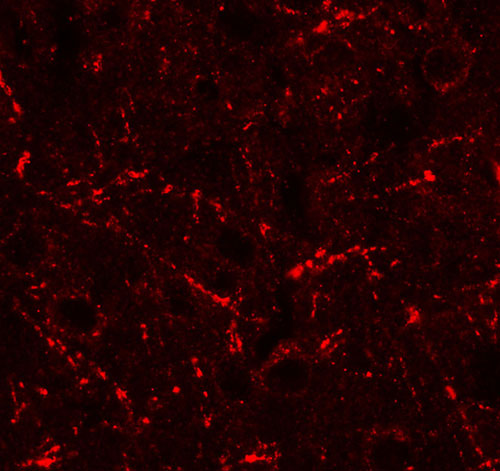 Immunofluorescence of CCL4 in rat brain tissue with CCL4 antibody at 20 μg/ml. |