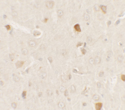 Immunofluorescence of AKT1S1 in rat brain tissue with AKT1S1 antibody at 20 μg/ml. |