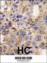 Formalin-fixed and paraffin-embedded human hepatocarcinoma reacted with HDAC6 Antibody (C-term)(Cat. AMM08574G), which was peroxidase-conjugated to the secondary antibody, followed by DAB staining. This data demonstrates the use of this antibody for immunohistochemistry; clinical relevance has not been evaluated.