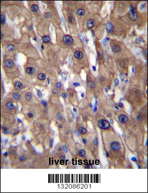 MAT1A Antibody (N-term) (Cat. AMM08575G)immunohistochemistry analysis in formalin fixed and paraffin embedded human liver tissue followed by peroxidase conjugation of the secondary antibody and DAB staining.This data demonstrates the use of MAT1A Antibody (N-term) for immunohistochemistry. Clinical relevance has not been evaluated. |