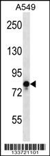 TRPV1 Antibody (N-term) (Cat. APR14075G) western blot analysis in A549 cell line lysates (35ug/lane).This demonstrates the TRPV1 antibody detected the TRPV1 protein (arrow).