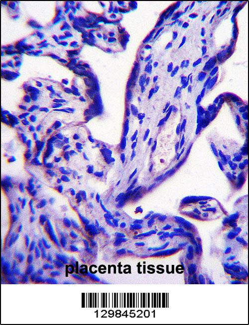 EFCB7 Antibody (C-term) (Cat. AMM08621G)immunohistochemistry analysis in formalin fixed and paraffin embedded human placenta tissue followed by peroxidase conjugation of the secondary antibody and DAB staining.This data demonstrates the use of EFCB7 Antibody (C-term) for immunohistochemistry. Clinical relevance has not been evaluated.