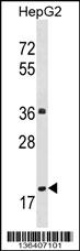 PPM1M Antibody (Center) (Cat. AMM08666G) western blot analysis in HepG2 cell line lysates (35ug/lane).This demonstrates the PPM1M antibody detected the PPM1M protein (arrow). |