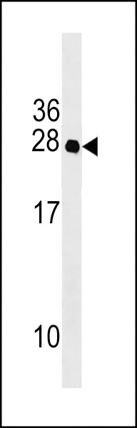 IFT27 Antibody (C-term) (Cat. AMM08634G) western blot analysis in A549 cell line lysates (35ug/lane).This demonstrates the IFT27 antibody detected the IFT27 protein (arrow). |
