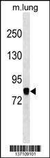 COG7 Antibody (C-term) (Cat. AMM08607G) western blot analysis in mouse lung tissue lysates (35ug/lane).This demonstrates the COG7 antibody detected the COG7 protein (arrow). |