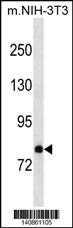 Mouse Dab2 Antibody (C-term) (Cat. AMM08652G) western blot analysis in mouse NIH-3T3 cell line lysates (35ug/lane).This demonstrates the Mouse Dab2 antibody detected the Mouse Dab2 protein (arrow). |