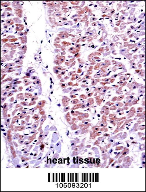 PTEN Antibody (C-term F279) (APR10849G)immunohistochemistry analysis in formalin fixed and paraffin embedded human heart tissue followed by peroxidase conjugation of the secondary antibody and DAB staining.This data demonstrates the use of PTEN Antibody (C-term F279) for immunohistochemistry. Clinical relevance has not been evaluated. |