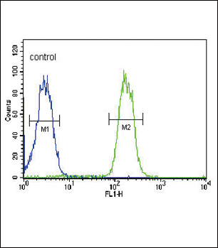 ABCC3 Antibody (Center) (Cat. APG01421G) flow cytometric analysis of MDA-MB435 cells (right histogram) compared to a negative control cell (left histogram).FITC-conjugated goat-anti-rabbit secondary antibodies were used for the analysis. |