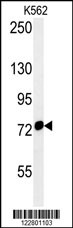 HSPA9 Antibody (Center) (Cat. APR07836G) western blot analysis in K562 cell line lysates (35ug/lane).This demonstrates the HSPA9 antibody detected the HSPA9 protein (arrow). |