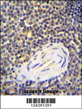 ACAP1 Antibody (N-term) (Cat. APR14781G)immunohistochemistry analysis in formalin fixed and paraffin embedded human spleen tissue followed by peroxidase conjugation of the secondary antibody and DAB staining.This data demonstrates the use of ACAP1 Antibody (N-term) for immunohistochemistry. Clinical relevance has not been evaluated. |