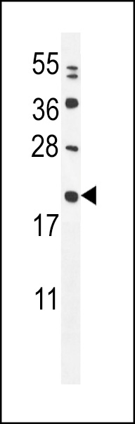 MIA40 Antibody (C-term) (Cat. APR08447G) western blot analysis in MDA-MB231 cell line lysates (35ug/lane).This demonstrates the MIA40 antibody detected the MIA40 protein (arrow).
