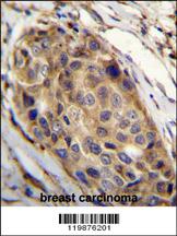 SSH3 Antibody (C-term) (Cat. AMM07985G)immunohistochemistry analysis in formalin fixed and paraffin embedded human breast carcinoma followed by peroxidase conjugation of the secondary antibody and DAB staining.This data demonstrates the use of SSH3 Antibody (C-term) for immunohistochemistry. Clinical relevance has not been evaluated.