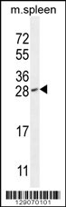 IAH1 Antibody (Center) (Cat. APR07911G) western blot analysis in mouse spleen tissue lysates (35ug/lane).This demonstrates the IAH1 antibody detected the IAH1 protein (arrow). |