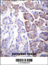 CPB1 Antibody (N-term) (Cat. APG02743G)immunohistochemistry analysis in formalin fixed and paraffin embedded human pancreas tissue followed by peroxidase conjugation of the secondary antibody and DAB staining.This data demonstrates the use of CPB1 Antibody (N-term) for immunohistochemistry. Clinical relevance has not been evaluated. |