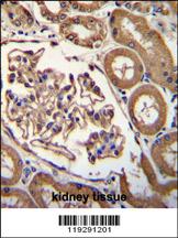 ENPEP Antibody (C-term) (Cat. APR15828G)immunohistochemistry analysis in formalin fixed and paraffin embedded human kidney tissue followed by peroxidase conjugation of the secondary antibody and DAB staining.This data demonstrates the use of ENPEP Antibody (C-term) for immunohistochemistry. Clinical relevance has not been evaluated.