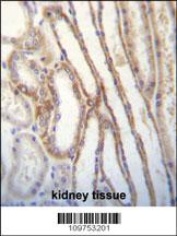 MYO3B Antibody (C-term) (Cat. APR17507G)immunohistochemistry analysis in formalin fixed and paraffin embedded human kidney tissue followed by peroxidase conjugation of the secondary antibody and DAB staining.This data demonstrates the use of MYO3B Antibody (C-term) for immunohistochemistry. Clinical relevance has not been evaluated. |