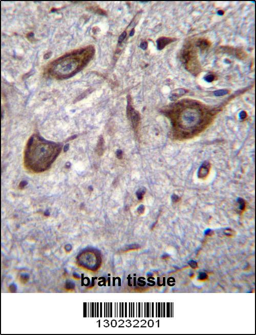 GRIA4 Antibody (Center) (Cat. AMM05455G)immunohistochemistry analysis in formalin fixed and paraffin embedded human brain tissue followed by peroxidase conjugation of the secondary antibody and DAB staining.This data demonstrates the use of GRIA4 Antibody (Center) for immunohistochemistry. Clinical relevance has not been evaluated. |