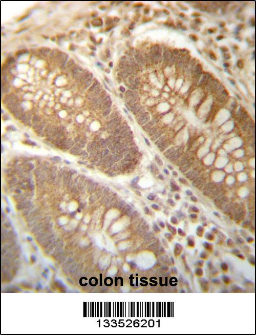 PGAM4 Antibody (N-term) (Cat. APR09070G)immunohistochemistry analysis in formalin fixed and paraffin embedded human colon tissue followed by peroxidase conjugation of the secondary antibody and DAB staining.This data demonstrates the use of PGAM4 Antibody (N-term) for immunohistochemistry. Clinical relevance has not been evaluated. |