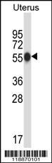 CPO Antibody (N-term) (Cat. APR15579G) western blot analysis in human normal Uterus tissue lysates (35ug/lane).This demonstrates the CPO antibody detected the CPO protein (arrow). |