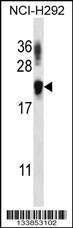 TTC33 Antibody (Cat. AMM08363G) western blot analysis in NCI-H292 cell line lysates (35ug/lane).This demonstrates the TTC33 antibody detected the TTC33 protein (arrow).