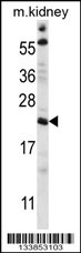 TTC33 Antibody (Cat. AMM08363G) western blot analysis in mouse kidney tissue lysates (35ug/lane).This demonstrates the TTC33 antibody detected the TTC33 protein (arrow).