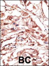 Formalin-fixed and paraffin-embedded human cancer tissue reacted with the primary antibody, which was peroxidase-conjugated to the secondary antibody, followed by DAB staining. This data demonstrates the use of this antibody for immunohistochemistry; clinical relevance has not been evaluated. BC = breast carcinoma; HC = hepatocarcinoma.