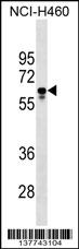 PGS1 Antibody (Center) (Cat. APR09102G) western blot analysis in NCI-H460 cell line lysates (35ug/lane).This demonstrates the PGS1 antibody detected the PGS1 protein (arrow). |
