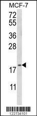 Western blot analysis of GABARAPL2 Antibody (Cat. APR07106G) in MCF-7 cell line lysates (35ug/lane). GABARAPL2 (arrow) was detected using the purified Pab.