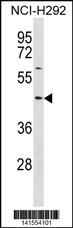 TXNIP Antibody (N-term) (Cat. APR10592G) western blot analysis in NCI-H292 cell line lysates (35ug/lane).This demonstrates the TXNIP antibody detected the TXNIP protein (arrow). |