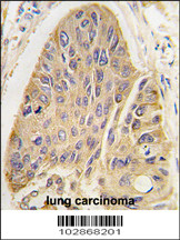 Formalin-fixed and paraffin-embedded human lung carcinoma tissue reacted with hMAP2-Q425 antibody, which was peroxidase-conjugated to the secondary antibody, followed by DAB staining. This data demonstrates the use of this antibody for immunohistochemistr |