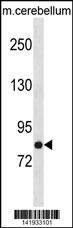 NSF Antibody (C-term) (Cat. AMM06835G) western blot analysis in mouse cerebellum tissue lysates (35ug/lane).This demonstrates the NSF antibody detected the NSF protein (arrow). |