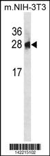 PSPH Antibody (N-term) (Cat. AMR09588G) western blot analysis in mouse NIH-3T3 cell line lysates (35ug/lane).This demonstrates the PSPH antibody detected the PSPH protein (arrow). |