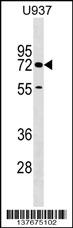 CERCAM Antibody (C-term) (Cat. APR15410G) western blot analysis in U937 cell line lysates (35ug/lane).This demonstrates the CERCAM antibody detected the CERCAM protein (arrow). |