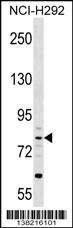 CRTAC1 Antibody (N-term) (Cat. APR15602G) western blot analysis in NCI-H292 cell line lysates (35ug/lane).This demonstrates the CRTAC1 antibody detected the CRTAC1 protein (arrow). |