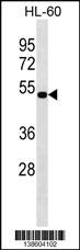 NAAA Antibody (C-term) (Cat. APR08585G) western blot analysis in HL-60 cell line lysates (35ug/lane).This demonstrates the NAAA antibody detected the NAAA protein (arrow). |