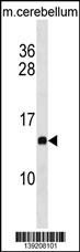 PFDN2 Antibody (C-term) (Cat. AMM07107G) western blot analysis in mouse cerebellum tissue lysates (35ug/lane).This demonstrates the PFDN2 antibody detected the PFDN2 protein (arrow). |