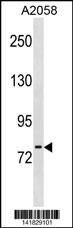NLN Antibody (Center) (Cat. APR08745G) western blot analysis in A2058 cell line lysates (35ug/lane).This demonstrates the NLN antibody detected the NLN protein (arrow). |