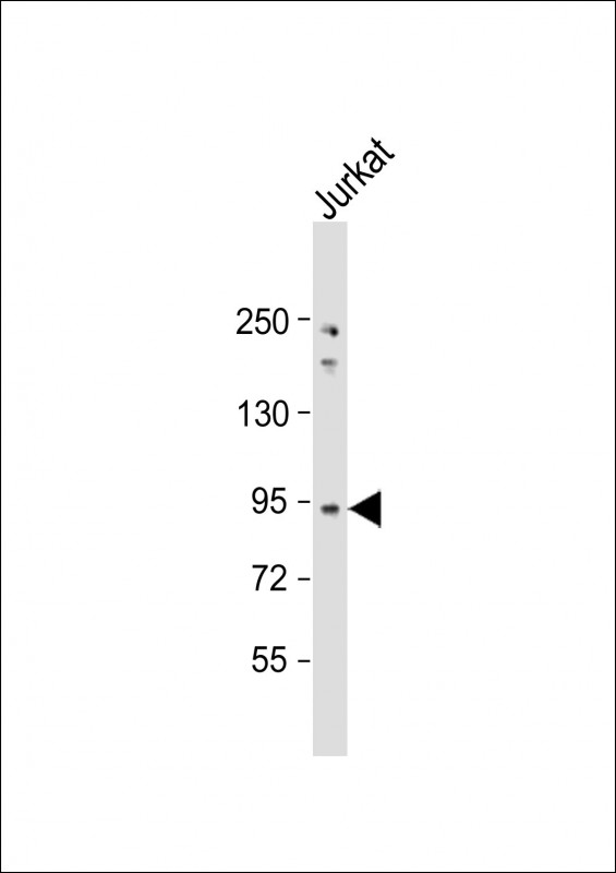 Anti-NUP93 Antibody (C-Term) at 1:1000 dilution + Jurkat whole cell lysate Lysates/proteins at 20 μg per lane. Secondary Goat Anti-Rabbit IgG, (H+L), Peroxidase conjugated at 1/10000 dilution. Predicted band size : 93 kDa Blocking/Dilution buffer: 5% NFDM/TBST. |