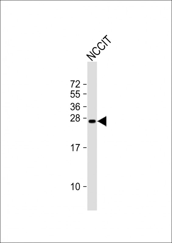 Anti-LIN28A Antibody (C-term) at 1:1000 dilution + NCCIT whole cell lysate Lysates/proteins at 20 μg per lane. Secondary Goat Anti-Rabbit IgG, (H+L), Peroxidase conjugated at 1/10000 dilution. Predicted band size : 23 kDa Blocking/Dilution buffer: 5% NFDM/TBST.