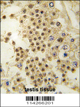 Formalin-fixed and paraffin-embedded human testis tissue reacted with LIN28A antibody (C-term) (Cat. AMM06302G), which was peroxidase-conjugated to the secondary antibody, followed by DAB staining. This data demonstrates the use of this antibody for immunohistochemistry; clinical relevance has not been evaluated. |